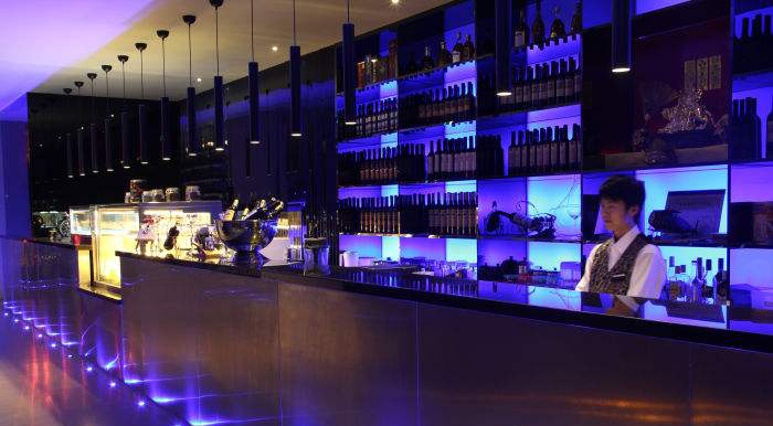 吧台區的大小與酒吧的麵積、服務的範圍有關,此外在狹窄的吧台中配置幾名工作人員是決定作業空間大小的關鍵因素。在滿足功能要求的前提下空間布置要盡可能緊湊。在布置午夜视频免费在线观看設施時要注意使操作人員工作時麵對顧客,以給顧客造成親切的視覺和心理效果。工作人員麵對顧客還易於及時把握顧客的需求,有利於提高服務質量。