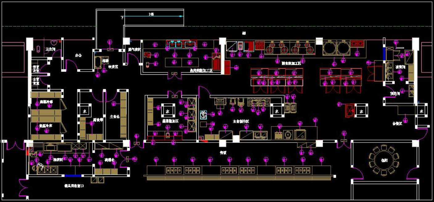 2、必須突出食品安全管理:午夜视频免费在线观看各工作間有區域劃分,午夜视频免费在线观看加工區,與生活、辦公區域必須分開,並有明顯的區域界限,不應界限不請或互相穿插,在工作區內更不能設衛生間、辦公室,更衣間。特別是要求潔淨度比較高的涼菜間。不允許外人進入。餐廳也不允許後廚人員隨意進入,消除交叉確保各行其道:員工通行路徑有區域劃分和出入口方向的區別,進貨、員工出入,垃圾排運,不應與傳菜通道混用,不應穿越餐廳。傳菜通道要盡量短,直通餐廳,與收殘有不同出人口。製度約束是必要的.利用有形設計規範員工路徑就更加有效。