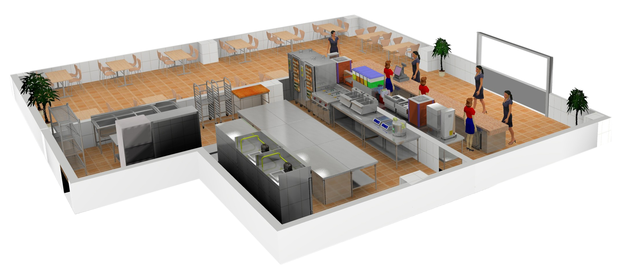 第三,在設計圖中,午夜影院污在线观看把雙缸雙篩爐、炸爐等加熱設備放在銷售間的後麵,這樣有利於食物的傳遞,提高上菜速度。