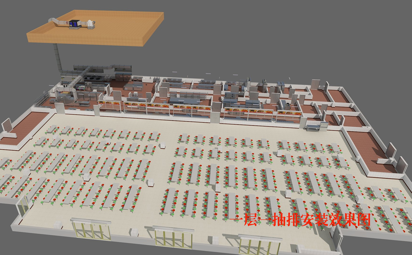 氣流組織就是利用各工作間及周邊空間的正負壓設計,控製氣流按照科學合理的流程流動。首先確定各空間的正負壓、基本原則就是高清淨、幹燥防潮的環境需要保持正狀態,使室內空氣向外流動,使油煙、蒸汽不能進入室內汙染環境和食品。產生油煙、蒸汽、異味、潮濕、餘熱的環境要保持負壓狀態,使室外氣流向內流動,實施氣流流程控製。