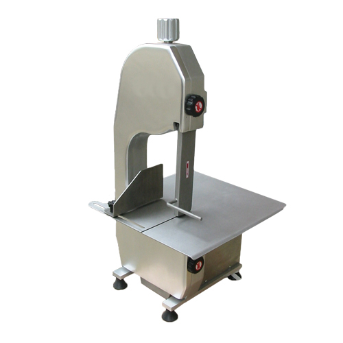 鋸骨機是由不鏽鋼架、電動機裝置、環形鋼鋸條、工作平鋼板、厚寬度調節裝置及外部不鏽鋼麵組成。其主要用於切割大塊帶骨肉類,例如火腿、豬大排、肋排、( 骨牛排、西冷牛排、牛仔肋排、牛膝骨、牛豬腳及冷凍的大塊牛肉、豬肉等食品原料。鋸骨機是通過電動機帶動環形鋼鋸條轉動來切割食品的,是大型賓館、餐館其切配中心、加工午夜视频免费在线观看不可缺少的設備,尤其是西餐午夜视频免费在线观看加工骨牛排、西冷牛排、牛仔膝骨等發揮作用極大。