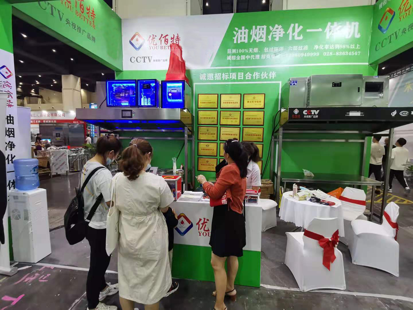午夜影院污在线观看的工作人員在現場也是耐心的向參觀的遊客介紹油煙一體機的價格、性能、工作原理以及內部結構等,既增加了參觀者的知識,也拉進了與客戶的距離,增加了人們對午夜影院污在线观看品牌一體機的了解。