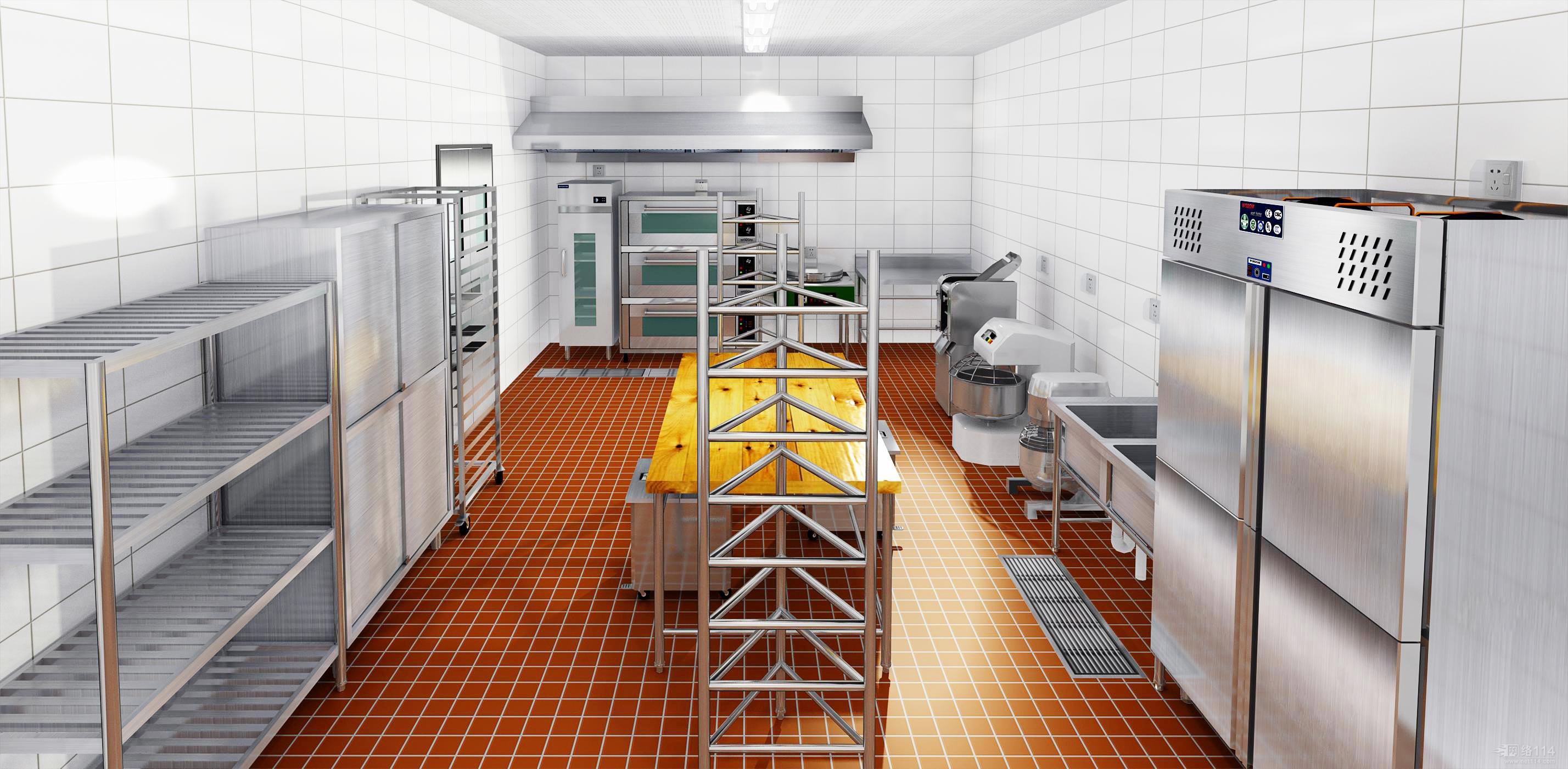 洗碗間:配置設備有不鏽鋼碗櫃、不鏽鋼收殘台、不鏽鋼水池、高溫消毒櫃這四件設備是必備的。如果有經濟實力可以考慮洗碗機。