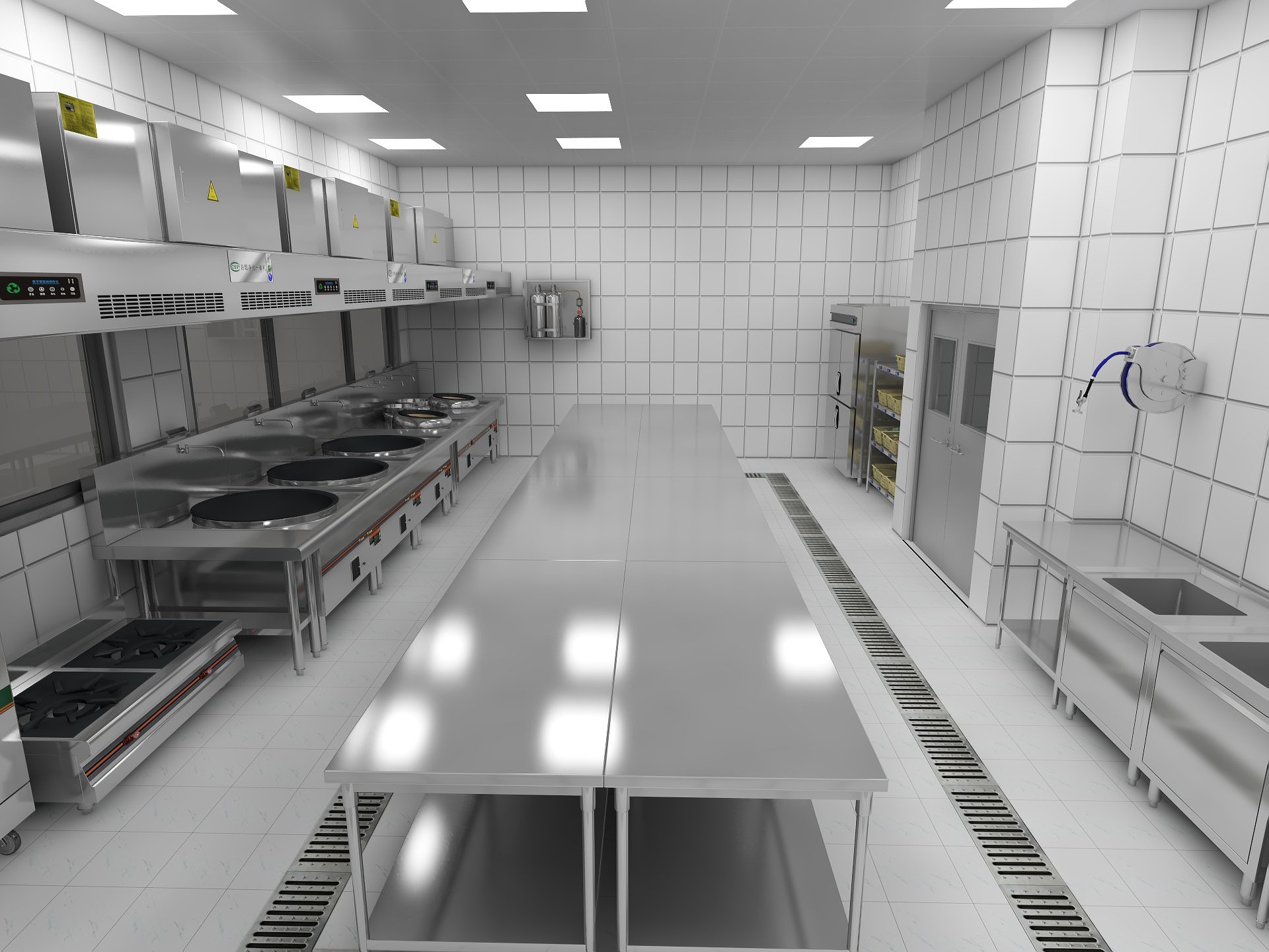 設備配置:雙星汙碟台、高壓花灑、通道式洗碗機、集氣罩、潔碟台、殘食台、三星水池、雙層工作台、低溫臭氧消毒櫃、單開調理櫃、雙眼殘食台連收殘車等。