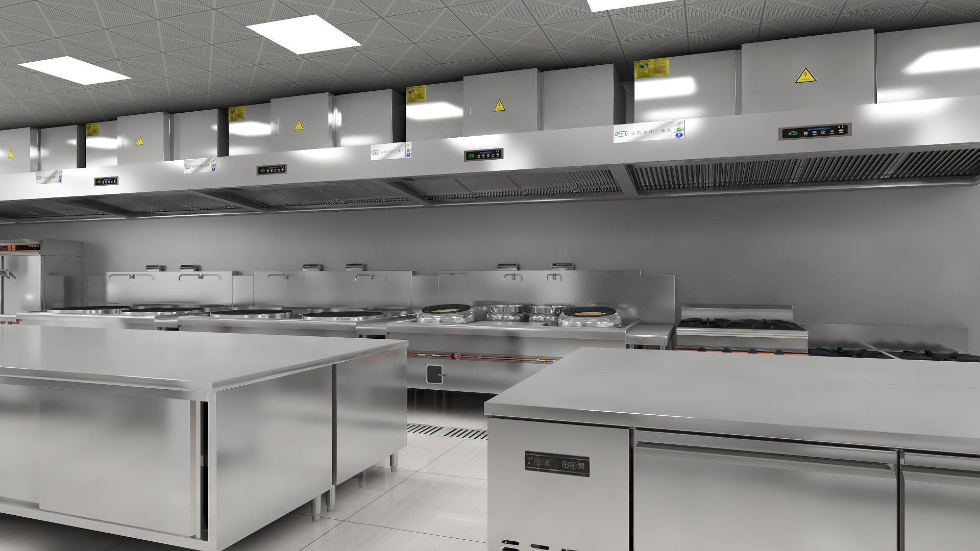 有些設備需要錯開布局,拉開一定的距商。冷熱設備、幹濕設備要分開,生製熟製設備要分開;需要開門的設備要留出開啟空間;不能緊貼灶台側麵設置冰櫃、保鮮工作台等製冷設備;水池不能緊貼麵案,以免受潮發黴。