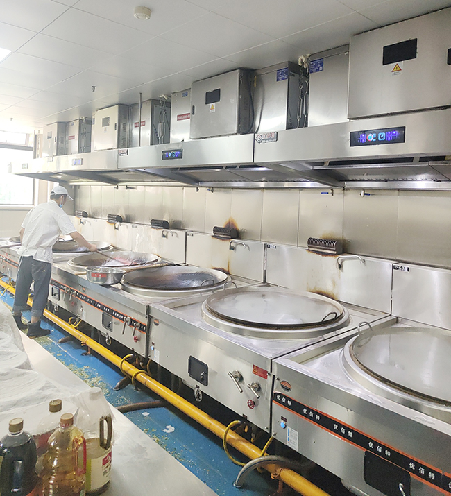 二、有條件的在每個餐桌上方安裝排風扇和煙道。不行的話就在對應的牆上安裝換氣扇、排風扇,使空氣流通。