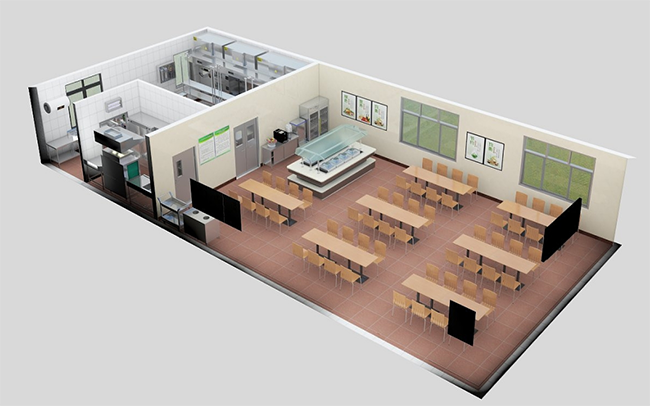 2、縮短運送距離:午夜视频免费在线观看的各種工作區域,例如,主、副食主要加工間和明檔、售飯台、粗加工間、庫房、冷藏庫、運貨梯的位置等,要有順暢的通道,並且盡量拉近相互的位置距離,縮短運送距離,提高工作效率。即使結構麵積受限,相對獨立的區域也要保證有完整的配套功能。例如,把粗加工間、熱菜間、涼菜間之間的距離盡量縮短,便於運送和配合,減少工作量。