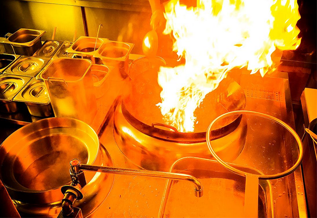 注:油鍋起火時千萬不要用水撲滅!因為水碰到高溫油會變成“炸鍋”,使油火到處飛濺。