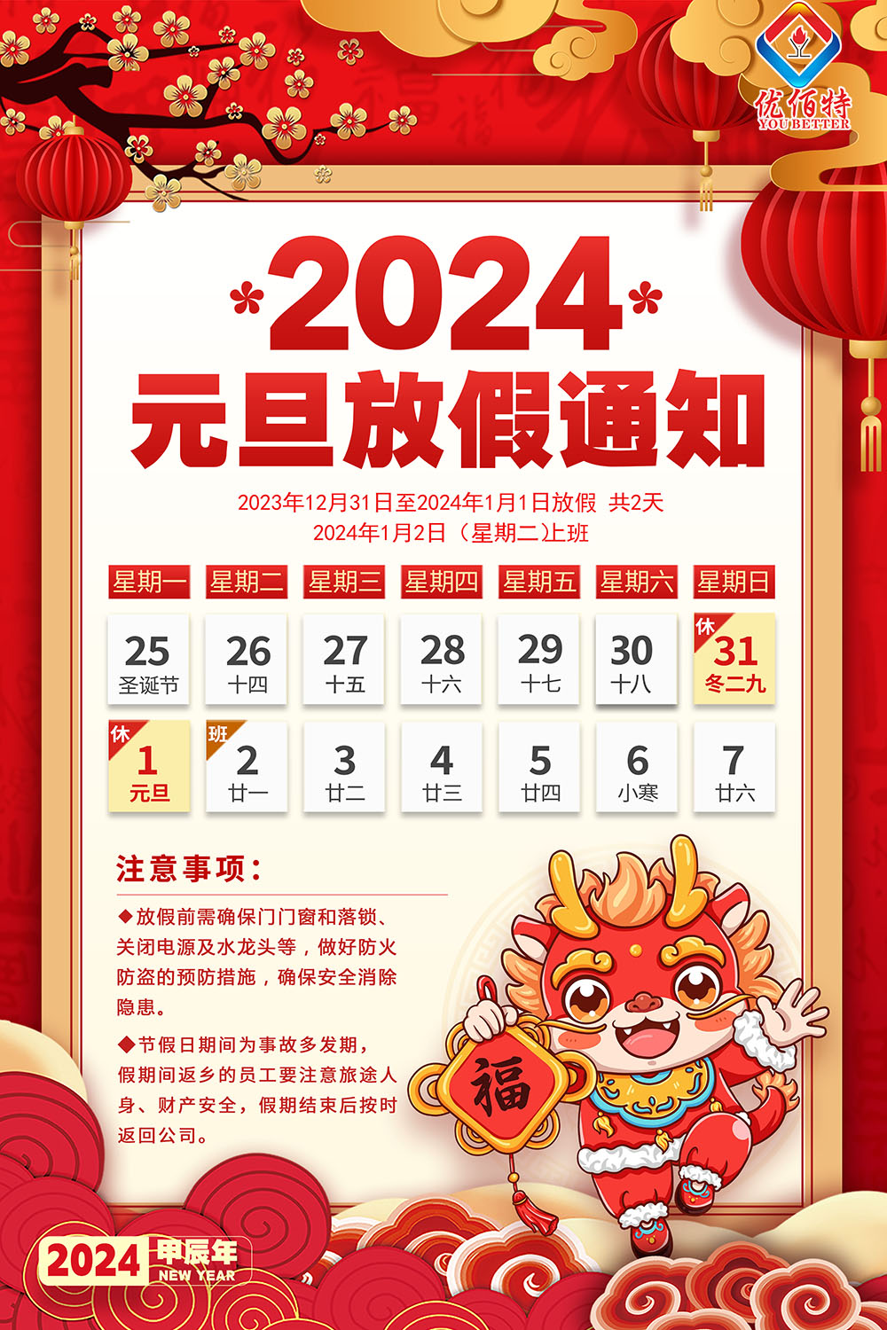 元旦放假通知