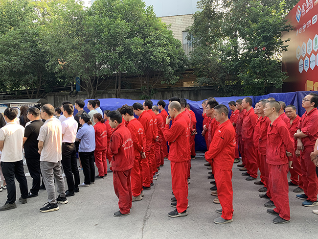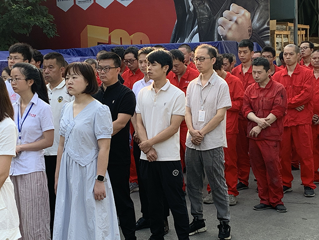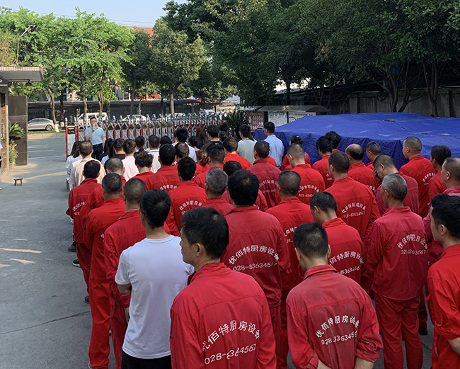 全體員工都排好整齊的隊伍,準備本次會議的召開。