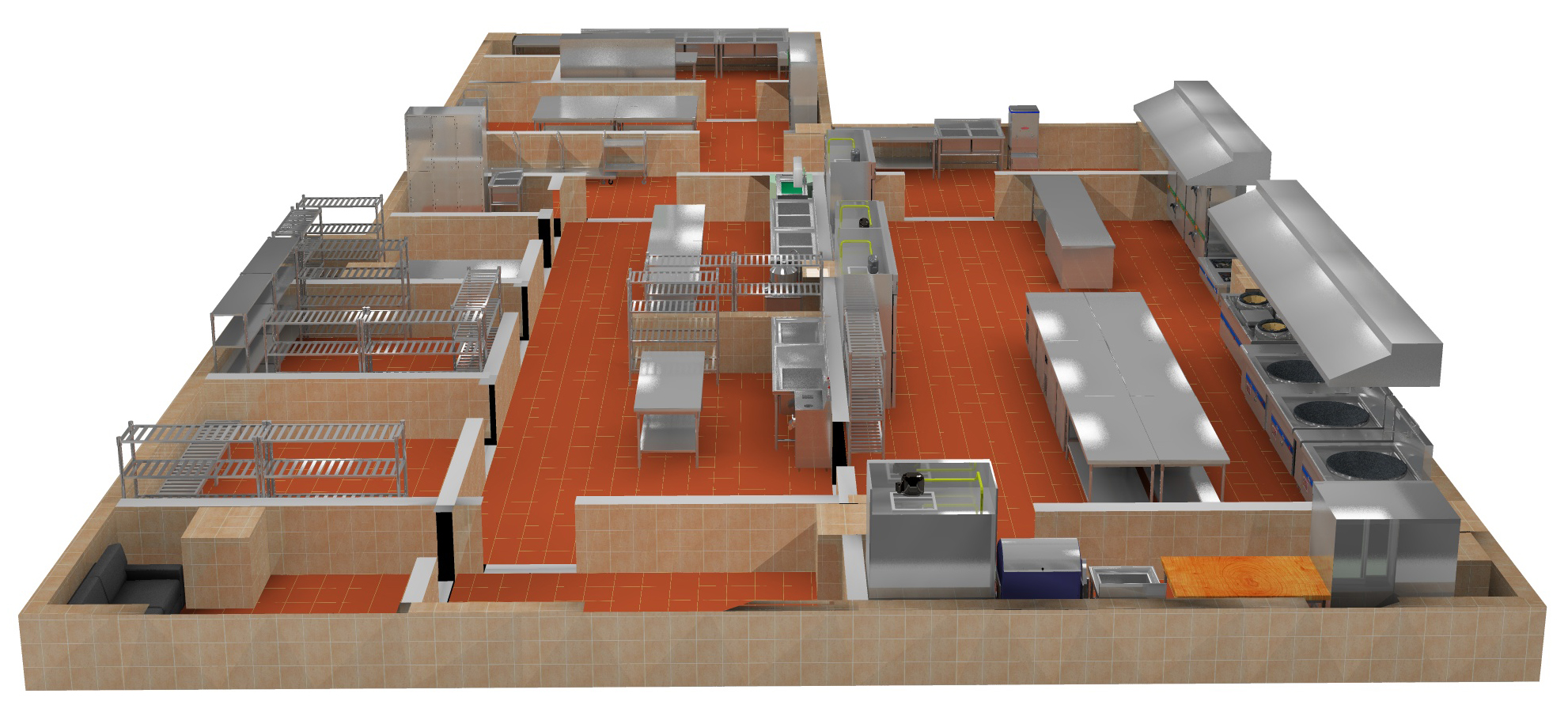 從午夜视频免费在线观看係統功能上,完整的工作流程各個環節要有相應的空間、設備、崗位保證工作流程實現,必須保證工作流程必備功能部位。小午夜视频免费在线观看即使不能分設多種工作間保證加工的需要,但有些功能部位是必備的。例如,午夜视频免费在线观看不單設庫房和粗加工間,但每日采購的原料必須有存放的位置,必須有摘洗處理的水池和案麵。這是午夜视频免费在线观看設計必須具備的功能。