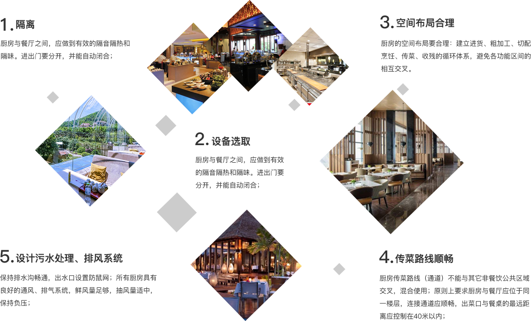酒店午夜视频免费在线观看應具備加工間、製作間、備餐間、庫房、洗碗消毒間、廚師長辦公室及廚工服務用房等。 午夜影院污在线观看對布局、路線、分區、排水等方麵均按照國家相關法律法規進行設計,考慮到餐飲的生產, 從原材料的采購、收貨、入庫、存儲、保管到出庫、粗加工、切配、烹飪、裝盤出品等多方麵進 行設計。應關注以下幾個方麵:根據生產、出品的次序布局; 避免進、出午夜视频免费在线观看的物流產生交叉與 回流;避免人流與物流的交叉及員工流與客流的交叉;盡量縮短員工製作菜肴的行走路線;注意 潔、汙,生、熟的分區;午夜视频免费在线观看的所有排水須經過隔油池隔除油汙後方可排放出。